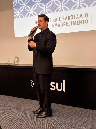 Sua conexão com os pacientes vai além da teoria: sua jornada pessoal inclui a superação da obesidade e um processo completo de recondicionamento físico.