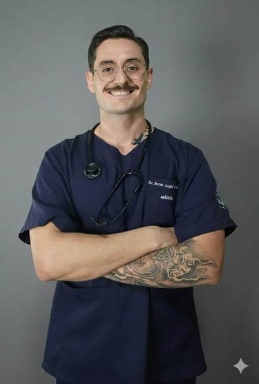 Médico Generalista, formado em Medicina pela UNISUL, Dr. Arno Vieira desenvolveu atuação focada em saúde, medicina esportiva e cuidado clínico baseado em ciência.